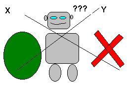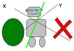What we want is for the robot to know if the signal came from a point on the X or a point on the O. The senor itself does not know, it just returns X,Y numbers from the coordinate axis with the robot in the center.